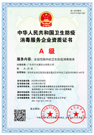 消毒服務(wù)企業(yè)資質(zhì)證書